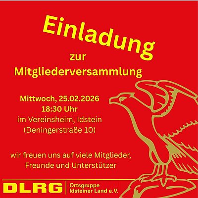 Anträge zur Tagesordnung müssen bis spätestens 19.02.2026 bei einem der Vorsitzenden eingegangen sein (vorsitz@idsteiner-land.DLRG.de).