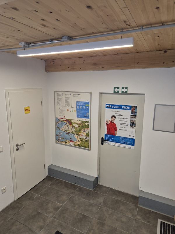 Die Beleuchtung von Schulungs-/Sozialraum, Treppenhaus und dem Hof/Außenbereich stand aus.